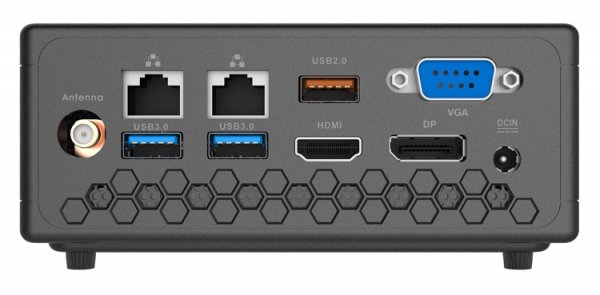 Мини-компьютер наделён интерфейсами HDMI 2.0a, DisplayPort 1.2 и D-Sub для вывода изображения, тремя портами USB 3.0, одним симметричным разъёмом USB 3.0 Type-C и одним портом USB 2.0. Кроме того, предусмотрен ридер флеш-карт SD/SDHC/SDXC.