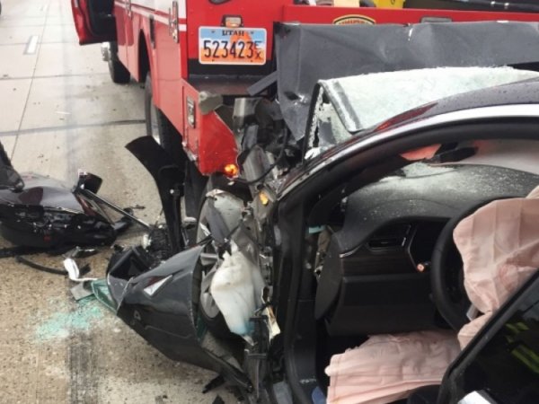 Полиция в штате Юта сообщила, что, согласно данным системы Model S, водитель транспортного средства включил режим автопилота за 1 мин 22 с до аварии. В отчёте указано, что управлявшая автомобилем 28-летняя женщина убрала руки с рулевого колеса, когда включала систему, после чего не касалась рулевого колеса в течение следующих 80 с, пока не произошло столкновение с пожарной машиной, остановившийся на красный свет светофора. Авария произошла примерно в 20 милях (32 км) к югу от Солт-Лейк-Сити. Автомобиль двигался со скоростью 60 миль/ч (97 км/ч). Женщина призналась полиции, что перед аварией отвлеклась — смотрела на телефон. К счастью, она отделалась лишь переломом лодыжки, хотя передняя часть Model S получила значительные повреждения.