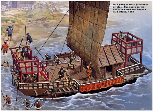 Пираты-ронины вокоу в 16 веке наводили ужас на торговцев и крестьян от Малакки до Кореи. Нападая на беззащитные поселения, они выносили все ценное, попутно учиняя страшную резню. Пленные становились бесплатной рабочей силой, естественную убыль которой от тяжелой работы и плохих условий содержания пираты пополняли повторными набегами.