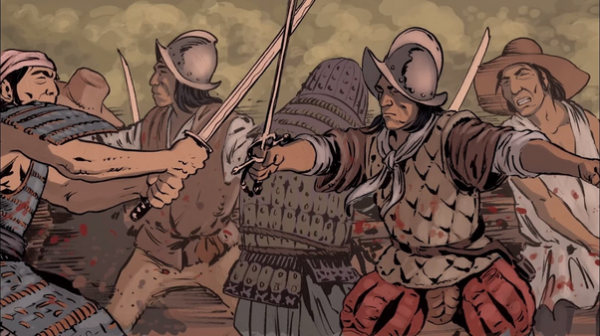 Вокоу волнами накатывались на испанский строй, но идальго отработанными движениями насаживали наступающих на пики. Абордаж был отбит, и вскоре сами испанцы переместились на палубу сампана, где встретились с элитой — закованными в броню и вооруженными катанами ронинами.