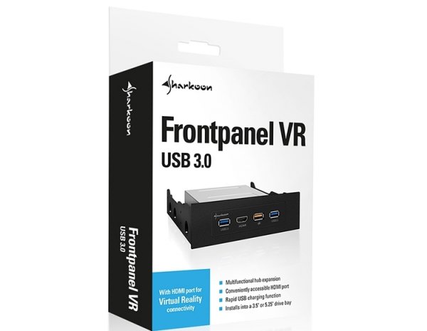 Компания Sharkoon анонсировала устройство Frontpanel VR USB 3.0, призванное повысить удобство подключения шлемов виртуальной реальности (VR) к настольным компьютерам. Новинка представляет собой специальный модуль, устанавливающийся в 5,25-дюймовый отсек компьютерного корпуса. На фронтальную панель этого блока выведены два порта USB 3.0 с пропускной способностью до 5 Гбит/с и интерфейс HDMI 2.0. Благодаря Frontpanel VR USB 3.0 пользователи смогут подключать VR-шлемы через разъёмы в лицевой части своего ПК. За счёт этого повысится удобство работы с гарнитурами виртуальной реальности, поскольку подсоединять кабели к портам на задней стороне компьютера может быть не слишком удобно и даже проблематично, например, если ПК располагается в специальной нише в столе. Модуль Frontpanel VR USB 3.0 также содержит дополнительный порт для подзарядки гаджетов. Этот разъём поддерживает такие стандарты, как Quickcharge 3.0, FCP, AFC, Apple 2.4A, Samsung 2.0A и BC1.2. Модуль имеет размеры 120 ? 101 ? 25 мм и весит около 400 граммов. Гарантирована совместимость с компьютерами под управлением операционных систем Windows. Информации о цене пока нет.