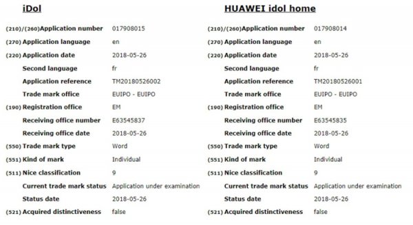На разработки в соответствующей сфере, как сообщают сетевые источники, указывают заявки Huawei на регистрацию новых торговых марок. В документации фигурируют названия iDol и Huawei idol home.