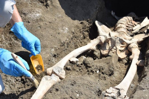 Во время раскопок в итальянских Помпеях археологи обнаружили необычный скелет мужчины. Спасаясь от извержения вулкана, он оказался придавлен 300-килограммовой каменной глыбой.