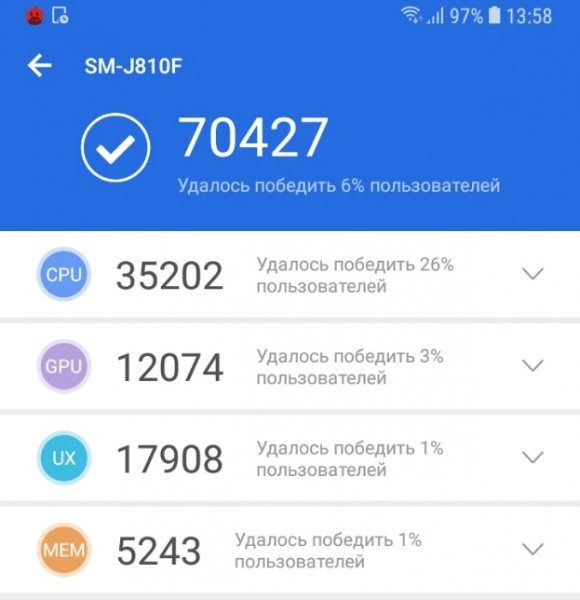 Назвать Galaxy J6 и J8 производительными гаджетами нельзя — в бенчмарке AnTuTu они набирают около 60 и 70 тысяч баллов. Для сравнения: Xiaomi Redmi Note 5 (читайте наш полный обзор) в этом же тесте набирает свыше 100 тысяч баллов.
