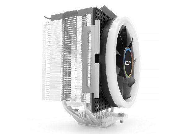 Вентилятором Crona 120 RGB оборудована вторая новинка — кулер H7 Ultra RGB. Конструкция этого решения включает медное никелированное основание с небольшим вспомогательным радиатором, четыре тепловые трубки диаметром 6 мм, а также основной радиатор.