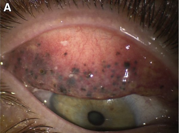 Вокруг частиц туши скопилось множество макрофагов — иммунных клеток, способных к захвату чужеродных элементов. Из-за этого у Линч началось хроническое воспаление. «Симптомы были, будто кто-то бросил в глаза горсть песка», — рассказала офтальмолог Дана Робай, которая столкнулась с этим случаем.