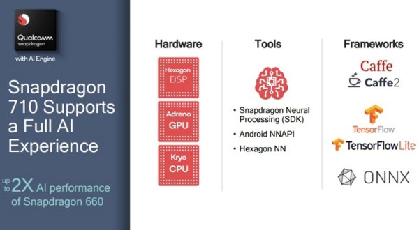 Отмечается, что основой аппарата послужит платформа Qualcomm Snapdragon 710. В состав этого недавно представленного процессора входят восемь ядер Kryo 360 с тактовой частотой до 2,2 ГГц. Обработка графики — задача контроллера Adreno 616. Чип содержит движок Artificial Intelligence (AI) Engine, отвечающий за ускорение операций, связанных со средствами искусственного интеллекта.