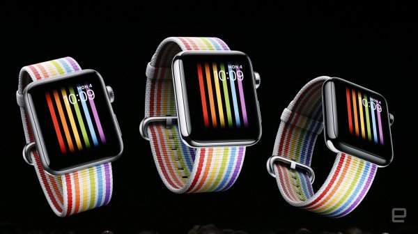 Apple Watch также позволят открывать ссылки на веб-сайты (обещают оптимизированные страницы). Кроме того, через часы теперь можно не только слушать музыку, но и подкасты через официальное приложение. Показали и новый ремешок с ЛГБТ-циферблатом и «режим молчания», как в новой iOS 12.