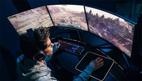 Наконец, показаны изогнутые мониторы Optix MAG271CR/MAG241CR. Они поддерживают новую функцию Gaming Echo: полноцветная подсветка на задней панели изменяется в зависимости от того, что происходит в запущенной компьютерной игре. Частота обновления достигает 144 Гц, время отклика — 1 мс.
