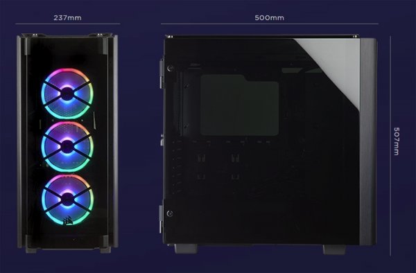 Компания Corsair представила на выставке Computex 2018, проходящей на Тайване, компьютерный корпус Obsidian 500D RGB SE формата Mid-Tower. Новинка относится к решениям премиум-класса. Устройство оснащено тремя панелями из закалённого стекла, которые установлены в боковых частях и спереди. При этом корпус изначально оборудован тремя фронтальными 120-миллиметровыми вентиляторами LL120 RGB с многоцветной подсветкой. Поддерживается установка материнских плат типоразмера Mini-ITX, Micro-ATX и ATX. Предусмотрено семь посадочных мест для карт расширения. В системе могут применяться дискретные графические ускорители длиной до 370 мм; причём видеокарта может быть расположена вертикально. Отсеки для 5,25-дюймовых устройств не предусмотрены. Внутри можно разместить два накопителя в форм-факторе 3,5 дюйма и три накопителя стандарта 2,5 дюйма. При использовании жидкостной системы охлаждения пользователи смогут монтировать радиаторы спереди, сверху и сзади. Длина таких компонентов может варьироваться от 120 до 360 мм. Высота процессорного кулера не должна превышать 170 мм. Корпус имеет размеры 500 ? 237 ? 507 мм. На планке с разъёмами присутствуют гнёзда для наушников и микрофона, два порта USB 3.0 и порт USB Type-C. Модель Corsair Obsidian 500D RGB SE поступит в продажу по цене 250 долларов США.