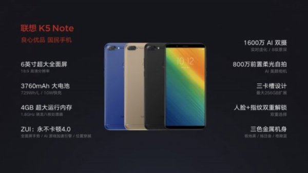 Компания Lenovo объявила о запуске на рынок двух новых смартфонов бюджетной направленности — обновлённой версии K5 Note с пометкой «2018», а также модели начального уровня Lenovo A5. Оба смартфона ориентированы на продолжительную автономную работу, которая обеспечивается энергоэффективной аппаратной частью в совокупности с ёмкими аккумуляторными батареями.