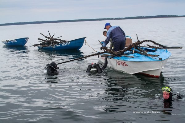 Информацией о находке он поделился с водолазом, работающим на той же станции, Сергеем Мамошкиным, активным участником мероприятий по увековечиванию памяти жертв Первой мировой войны. Затем они обратились к Святославу Гаврису — директору мядельского филиала благотворительного культурно-исторического фонда памяти Первой мировой войны «КРОКИ» с инициативой поднять ежи со дна Нарочи и передать их в местные музеи. Он поддержал инициативу и обратился в Мядельский РИК за помощью. Поддержали инициативу подъема начальник спасательной станции «Нарочь» Сергей Теляк и его коллега начальник спасательной станции «Зубренок» Александр Андреев.