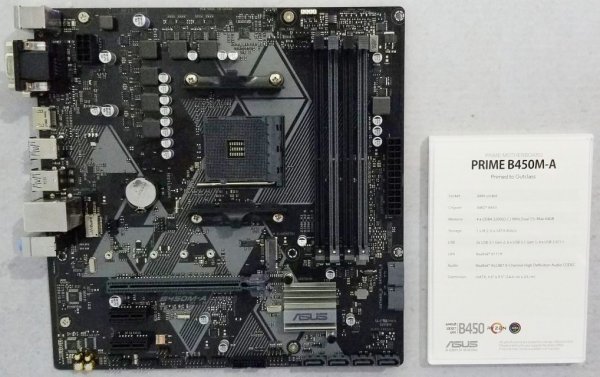 Micro-ATX плата ASUS Prime B450M-A находится примерно в той же ценовой категории (5500–6500 руб.), что и вышеописанная Prime B450-Plus. Она в меньшей степени пригодна для разгона процессоров Ryzen, поскольку обходится без транзисторных радиаторов. С другой стороны, для Prime B450M-A достаточно небольшого корпуса. В характеристиках данной модели нет ничего сверхъестественного: заявлены наличие шести каналов питания гнезда для CPU, поддержка памяти DDR4 с эффективной частотой до 3200 МГц, возможность установки M.2 SSD (доступен один слот M.2 Key M), карт расширения PCI Express (включая дискретный видеоадаптер) и SATA-накопителей (шесть портов 6 Гбит/с).