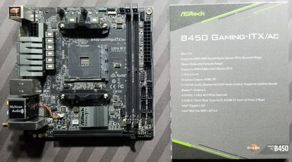 Инженеры ASRock подготовили к выставке в Тайбэе непритязательного вида матплаты, сочетающие в себе всё необходимое для сборки высокопроизводительных ПК. Изящной компоновкой выделяется модель B450 Gaming-ITX/ac форм-фактора Mini-ITX. Она включает в себя запитанный по «6 + 2»-фазной схеме разъём AM4, накрытый небольшим радиатором чипсет B450, слот PCI Express 3.0 x16 для видеокарты, два слота DIMM DDR4 (с поддержкой модулей DDR4-3466), четыре порта SATA 6 Гбит/с и находящийся на тыльной стороне платы разъём Ultra M.2 (32 Гбит/с) для скоростных SSD.