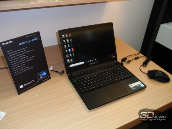 На стенде GIGABYTE, в частности, представлены новейшие ноутбуки игрового класса — модели Aero 15X, Aero 15 и Aero 14. Они оснащены шестиядерным процессором Intel Core i7-8750H поколения Coffee Lake-H. Графическая подсистема полагается на дискретный ускоритель NVIDIA.