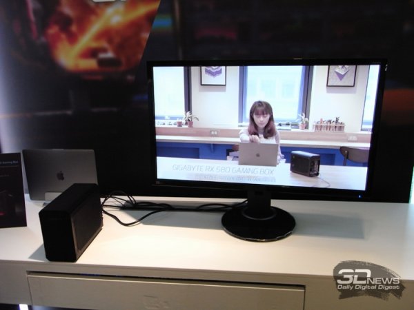 Тех пользователей, чьи портативные компьютеры не располагают мощной видеоподсистемой, может заинтересовать решение GIGABYTE RX 580 Gaming Box. Это внешний бокс с интерфейсом Thunderbolt 3, оборудованный графическим ускорителем Radeon RX 580 8G. Нужно отметить, что бокс располагает многоцветной подсветкой RGB Fusion.