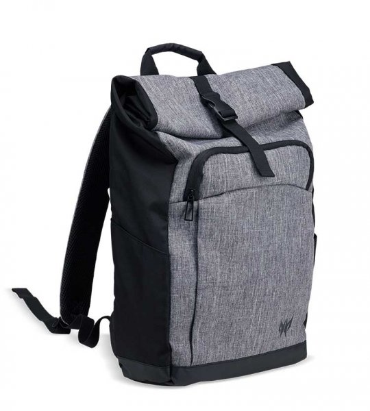 Рюкзак со сворачивающейся крышкой Predator Rolltop Jr. Backpack для города имеет защищённое отделение для 15,6-дюймового ноутбука. Крышка рюкзака фиксируется кнопками и закрывается на замок, спереди есть карман для быстрого доступа. Цвет рюкзака — светло-серый с чёрными вставками.
