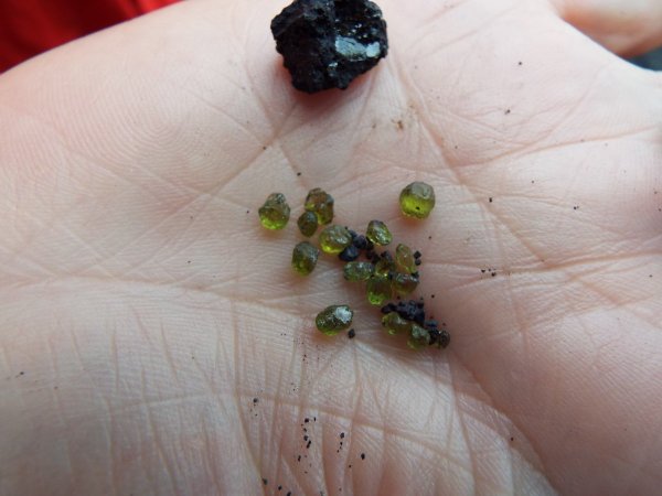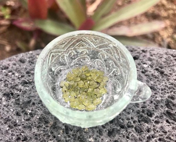 Жители Гавайев сообщают о находках зеленых кристаллов после извержения вулкана Килауэа. Геологи подтверждают: в лаве может содержаться минерал оливин. Его прозрачную разновидность называют хризолит, она считается самоцветом или драгоценным камнем.