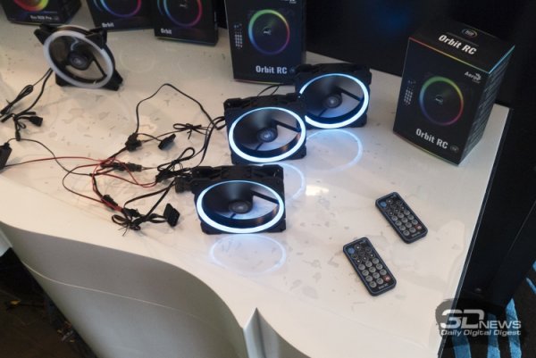Среди корпусных вентиляторов отметим серию Orbit RC — эти крыльчатки оснащены RGB-подсветкой, управлять которой можно при помощи специального пульта управления. Серия Rev RGB Pro, как видно из названия, тоже оснащена RGB-подсветкой, но только, в отличие от Orbit RC, управлять ей можно только при помощи отдельного контроллера или программного обеспечения материнской платы. «Крутиляторы» серий Rev Blue и Rev Red имеют только один цветовой паттерн — синий и красный соответственно.