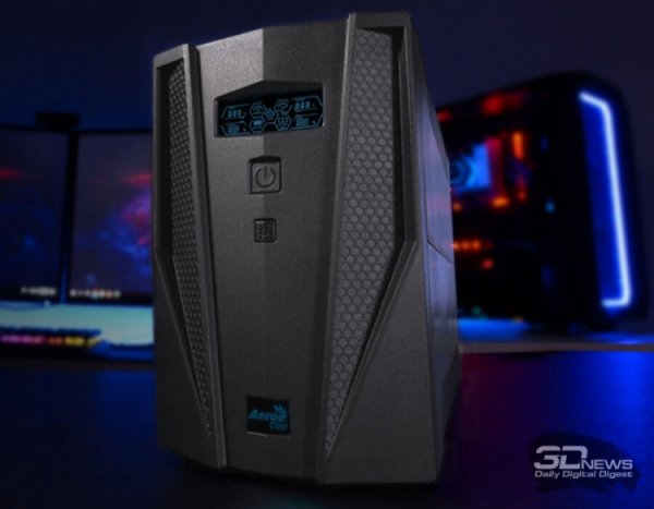 Наконец, Aerocool показала свои «игровые» ИБП Aero Shield. Под словом «игровой» подразумевается, что эти источники выглядят достаточно брутально и симпатично. Например, вы можете изменить цвет дисплея на корпусе устройства. Обычно ИБП выглядят неказисто, а здесь — любо-дорого поглядеть.