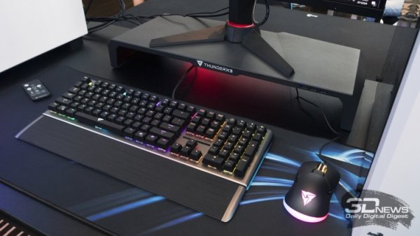Под маркой THUNDERX3 в продажу поступит и много всякой полезной мелочёвки — например, подставки под монитор, оснащённые дополнительными USB-разъёмами. На презентации нам показали клавиатуры и мыши, но в России в продаже их ждать пока не стоит.