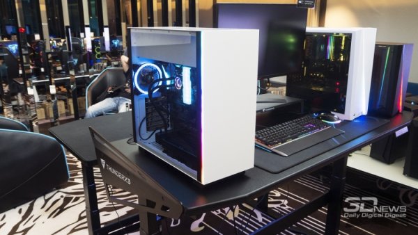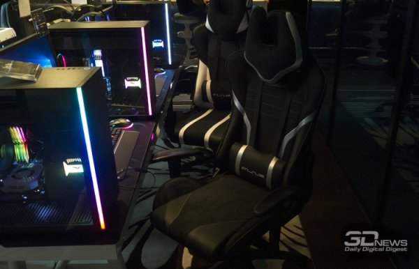 Уверены, что компания Aerocool российской публике в представлении не нуждается. В нашей стране достаточно популярны корпуса, блоки питания и системы охлаждения этой фирмы. Однако список продукции Aerocool расширяется. На выставке Computex 2018 компания представила свои новинки в том числе и под брендом THUNDERX3. В скором времени сразу под двумя марками выйдет в продажу всевозможная игровая периферия и компьютерные комплектующие: корпуса, блоки питания, клавиатуры, мыши, коврики, кресла и даже столы. Так, при входе в выставочную зону мы сразу же натолкнулись на компьютерный стол. Такие устройства в скором времени появятся в продаже как под маркой Aerocool, так и под брендом THUNDERX3. Столы могут быть разные — разных размеров, а также разной конструкции. Например, на фотографии выше показана модель Aerocool, которая регулируется по высоте нажатием всего пары кнопок. За таким столом вы можете работать даже стоя. Не знаем, насколько это полезно геймерам, но вот собирать ПК в таких условиях становится гораздо проще — не надо горбатиться. Столы под маркой Aerocool будут идти с ковром на всю площадь столешницы. Рама устройства выполнена из стали. Пульт управления предусматривает до 4 заготовленных профилей. На заднем торце есть RGB-подсветка. Также под брендами Aerocool и THUNDERX3 выйдут кресла, диваны и даже мягкие пуфики-груши. На наш взгляд, эта продукция предназначена скорее для игровых клубов, но и дома любой желающий может обустроить свой геймерский уголок. На грушах-пуфиках удобно играть, например, перед телевизором. Под маркой THUNDERX3 в продажу поступит и много всякой полезной мелочёвки — например, подставки под монитор, оснащённые дополнительными USB-разъёмами. На презентации нам показали клавиатуры и мыши, но в России в продаже их ждать пока не стоит. Раз у Aerocool есть столы — значит есть и кресла. На фото выше показана модель Fuse — спинка и сидушка этого кресла обшиты дышащим материалом, на ощупь напоминающим велюр. В комплекте идут подголовник и подушка под поясницу. Геймер может регулировать наклон кресла, а также его высоту. К тому же настраивается положение подлокотников. Что касается THUNDERX3, то и под этой маркой были представлены кресла BC1, BC3, BC5 и BC7. Как легко догадаться, модификации отличаются друг от друга разным количеством аксессуаров и фишек. Есть у THUNDERX3 у кресла с RGB-подсветкой. На мероприятии было представлено большое количество корпусов. Пожалуй, самой приметной оказалась модель GLO — теперь она доступна и в белом цвете. Новинка относится к формату Midi-Tower, её габариты составляют 210 ? 475 ? 477,8 мм. Боковая стенка полностью выполнена из закаленного стекла. На передней панели, но по бокам расположены две светодиодные RGB-полосы, обеспечивающие различные эффекты подсветки. Так, GLO совместима с технологиями ASUS AURA Sync и MSI Mystic Light. Интересно, что блок питания в Aerocool GLO устанавливается сверху, но он спрятан за металлической шторкой. Там же размещаются накопители. Шасси корпуса поддерживает материнские платы форм-факторов SSI-CEB, ATX, mATX и Mini-ITX. Длина дискретных графических ускорителей может достигать 425 мм. Вентиляторы воздушной системы охлаждения монтируются по следующей схеме: два 120-мм спереди, два 120-мм во внутренней области, три 120-мм внизу и один 120-мм сзади. Поддерживаются СЖО с радиаторами длиной 240 и 360 мм. Максимально допустимая высота процессорного кулера — 157 мм. Также Aerocool п