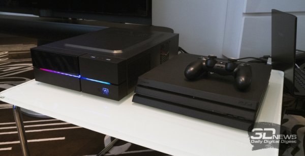 Также Aerocool представила интересный концепт компактного корпуса типоразмера Slim Desktop. Он очень сильно напоминает игровую приставку Xbox One и по размерам чуть превосходит консоль PlayStation 4. К сожалению, названия у этого устройства пока нет.