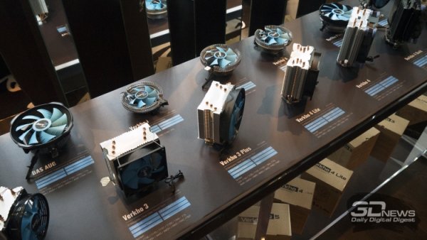 На презентации нам показали множество процессорных кулеров Aerocool, многие модели серии Verkho пользуются большой популярностью в нашей стране. Для производительных систем хорошо подойдут кулеры Verkho 4 Dark и Verkho 5 — радиаторы этих устройств имеют 4 и 5 теплотрубок соответственно. Во всех случаях используется технология прямого контакта теплотрубок с крышкой CPU.