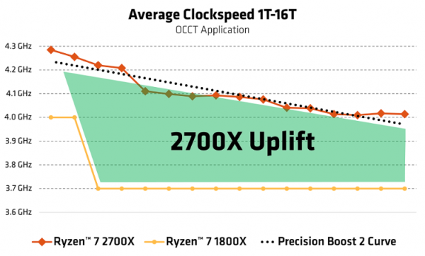 В процессорах семейства Zen+ реализован достаточно агрессивный boost-режим, основанный на сочетании технологий Precision Boost Overdrive (Precision Boost 2) и XFR 2. Думается, если новые алгоритмы динамического разгона применяются в CPU Ryzen 5 2600X и Ryzen 7 2700X, то не обходится без них и дуэт Ryzen 3 2300X и Ryzen 5 2500X.