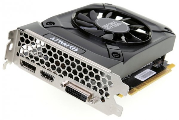 Palit Microsystems присоединилась к числу производителей видеокарт GeForce GTX 1050 3GB, выпустив модель с приставкой StormX. Последняя в номенклатуре Palit почти всегда означает использование внешне простой системы охлаждения с одним вентилятором, и новинка не стала в этом плане исключением. Адаптер GeForce GTX 1050 StormX 3GB (артикул NE51050018FE-1070F) при желании можно разместить в компактном корпусе форм-фактора Mini-ITX или Mini-Tower/Micro-ATX с пространством для двухслотовой видеокарты. В высоту ускоритель занимает 112 мм, в длину — 166 мм.