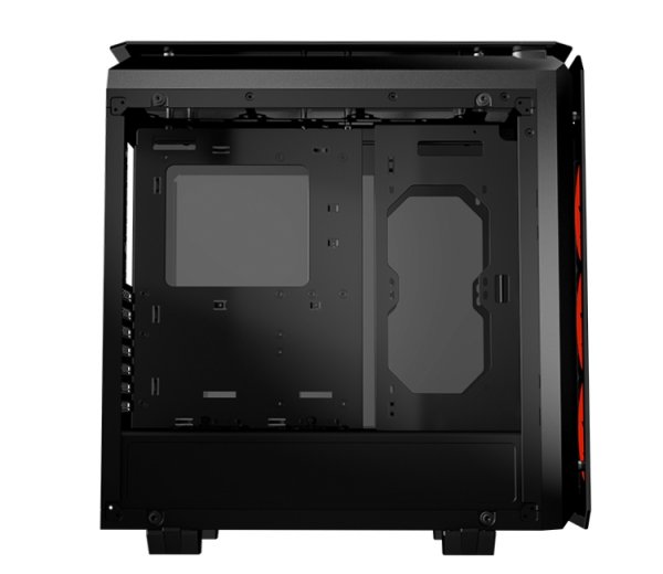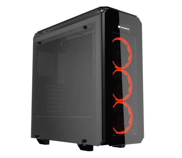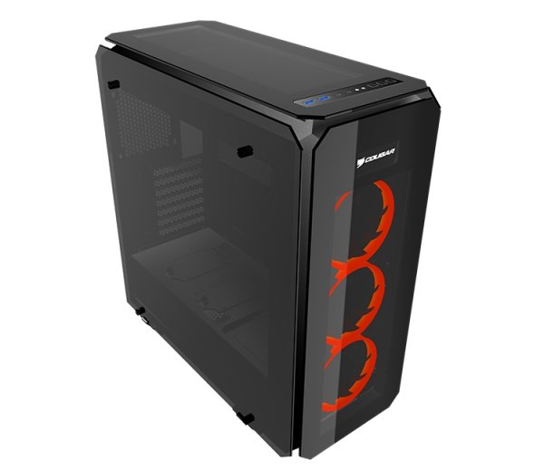 Изделие соответствует формату Mid-Tower. Корпус оснащён четырьмя панелями из закалённого стекла: они установлены в боковых частях, спереди и сверху. За лицевым стеклом расположены три вентилятора Cougar Vortex LED с яркой подсветкой.