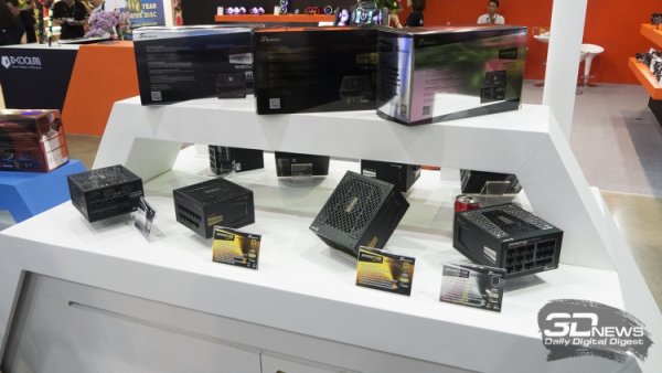 Конечно же, зона с блоками питания для настольных компьютеров выглядела заметно более красочнее. Просто потому, что в 2018 году даже такие устройства должны выглядеть презентабельно. Мы уже писали про тренды Computex 2018 — это прозрачные корпуса, много стекла и подсветки. Нравится вам это или нет, но таковы тенденции в мире домашних компьютеров.