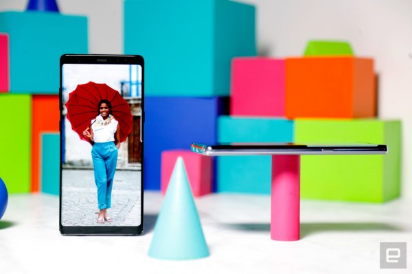 Как видим, по сравнению с прошлогодним Galaxy Note 8 (на фото ниже) уменьшен размер рамок сверху и снизу устройства. При этом компания не стала делать модный ныне вырез в верхней части экрана.