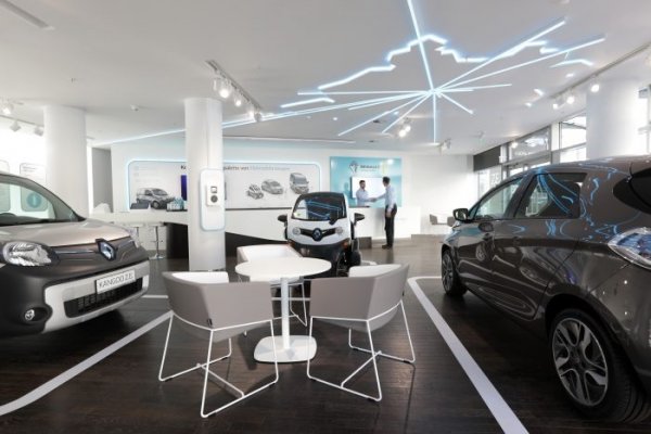 Ряд известных автопроизводителей, нацеленных на рост выпуска электромобилей, также пытаются решить проблемы с их реализацией в автосалонах. В их число входит компания Renault, которая исследует возможность продажи в автосалоне электромобилей. После успешного запуска пилотного проекта по продаже электрокаров в автосалоне в Стокгольме (Швеция) теперь открывает аналогичный пункт продаж в Германии. В то же время в автосалоне может быть сложно продавать одновременно электромобили и автомобили с двигателем внутреннего сгорания, поскольку сильные стороны одного из них нередко являются слабыми местами другого. Автодилеры заинтересованы продавать то, что у них имеется в наличии, и поскольку в настоящее время это в основном автомобили с двигателем внутреннего сгорания, они не прилагают больших усилий для продажи электрокаров. Отчасти поэтому Tesla решила обойти дилерскую модель и управлять своими собственными магазинами. Это также подтверждено несколькими исследованиями опыта покупки электромобилей. Совсем недавно выяснилось, что распространение электромобилей замедлилось из-за «пренебрежительных и вводящих в заблуждение автомобильных дилеров». Теперь Renault пытается применить в Европе подход, похожий на тот, что использует Tesla. В начале этого года ею был открыт первый концептуальный шоурум Renault Electric Vehicle Experience Center в Стокгольме. Похоже, что этот эксперимент прошёл успешно, поскольку программа привлекла «более 14 000 посетителей в течение первых трёх месяцев». Как и в Стокгольме, магазин в Берлине расположен в пешеходной зоне с оживлённым движением: историческом центре города невдалеке от площади Жандарменмаркт.