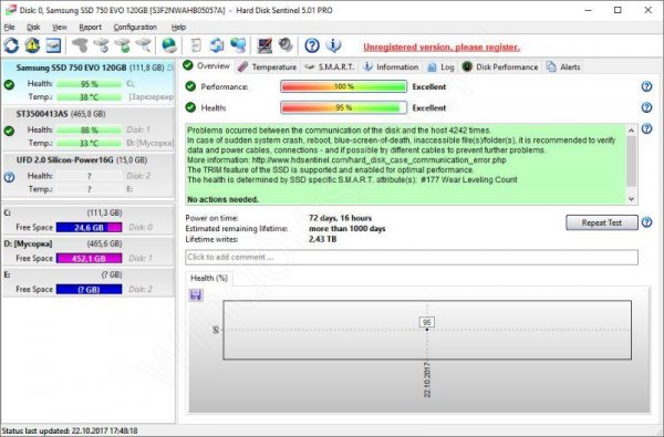 HDSentinel - это программное обеспечение для мониторинга и анализа SSD и HDD. Выполняет мониторинг S.M.A.R.T., температуры, износа и производительности.