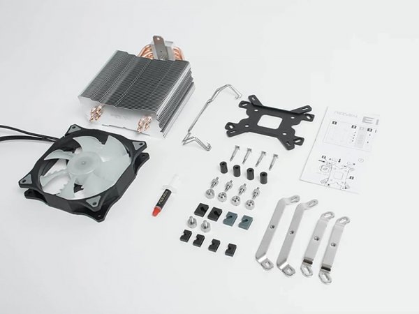 Конструкция кулера включает алюминиевый радиатор, 120-миллиметровый вентилятор и четыре тепловые трубки диаметров 6 мм. Последние имеют непосредственный контакт с крышкой процессора.