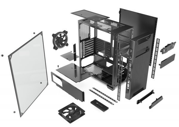 Корпус выполнен в чёрном цвете. Одна из боковых стенок изготовлена из закалённого стекла. Габариты составляют 500 ? 263 ? 475 мм. Поддерживается работа с материнскими платами типоразмера ATX, Micro-ATX и Mini-ITX.