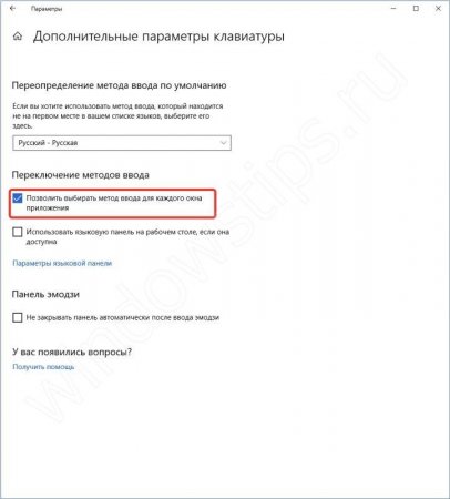 Настроить автоматическое переключение раскладки клавиатуры Windows 10