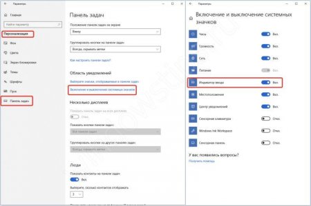 Если вдруг пропал значок раскладки клавиатуры, то в этом случае стоит проверить настройки в Персонализации. Для этого выполните следующие действия:
