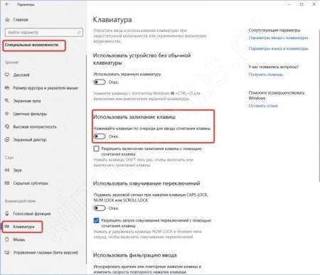 - Стоит обратить внимание на Залипание клавиш. Отключение этой опции помогает решить проблему.