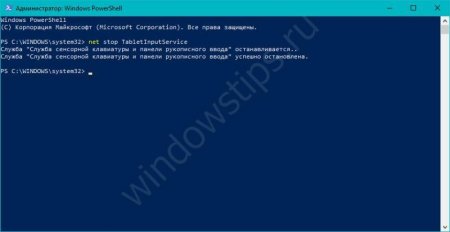 - Проверьте, не мешает ли системе «Служба сенсорной клавиатуры и панели рукописного ввода». Попробуйте остановить службу. Для этого откройте командную строку или окно PowerShell от имени администратора и введите следующую команду - net stop TabletInputService