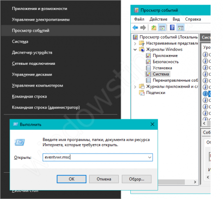 Нажмите ПКМ по кнопке пуск (или Win+X) и выберите Просмотр событий. Либо в окне Выполнить (Win+R) введите eventvwr.msc.