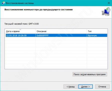 Если Защита системы включена, будет предложено выполнить восстановление из предложенных точек. Желательно выбрать момент, когда возможная ошибка еще не проявилась.