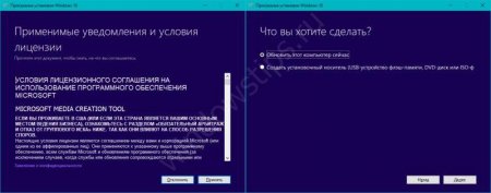После того, как утилита загружена, запустите её. Приняв условия лицензионного соглашения, выберите Обновить этот компьютер сейчас. Приложение начнёт загрузку необходимых файлов и подготовит систему для «обновления», после чего необходимо будет подтвердить внесение изменений.