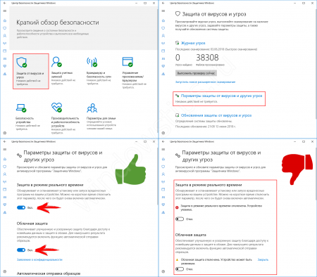 - Убедитесь в том, что облачная и защита в реальном времени включены.