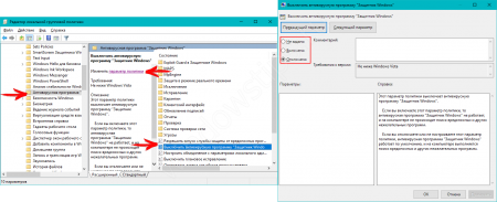 Если Вы используете Pro или Корпоративную версию системы, существует вероятность, что встроенный антивирус просто выключен через групповые политики. Выполните эти шаги, чтобы это проверить:
