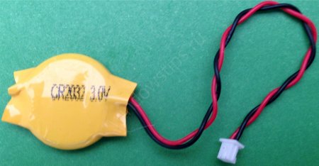 - Для ноутбука. Снимите крышку ноутбука, пока не доберетесь до небольшой батарейки. Она незначительно отличается от «компьютерной батарейки», там что от неё идут 2 провода, эти контакты подключены к материнской плате, для подержания работоспособности CMOS. Отключите контакты на 2-3 минут и подключите повторно.