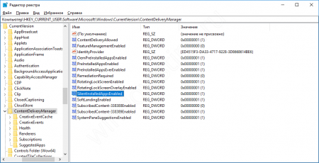 - и у параметра SilentInstalledAppsEnabled поставьте значение 0.