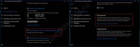 Но что делать, если Windows 10 удаляет нелицензионные программы: как исправить это положение? Что бы Windows не брезговала нелицензионным ПО и не ругалась на него, нужно выставить папку, куда устанавливается ПО в список исключений. Для начала откройте защитник Windows и пройдите Защита от вирусов и угроз – Параметры защиты от вирусов – Исключения и нажмите на «Добавление или удаление исключений».