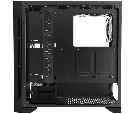 Новинка имеет строгий внешний вид. В боковой части установлена панель из закалённого стекла, через которую хорошо просматривается внутренняя часть компьютера. Спереди предусмотрена многоцветная RGB-подсветка.